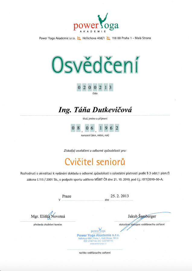 Vzdělání v oblasti jógy a cvičení 50+