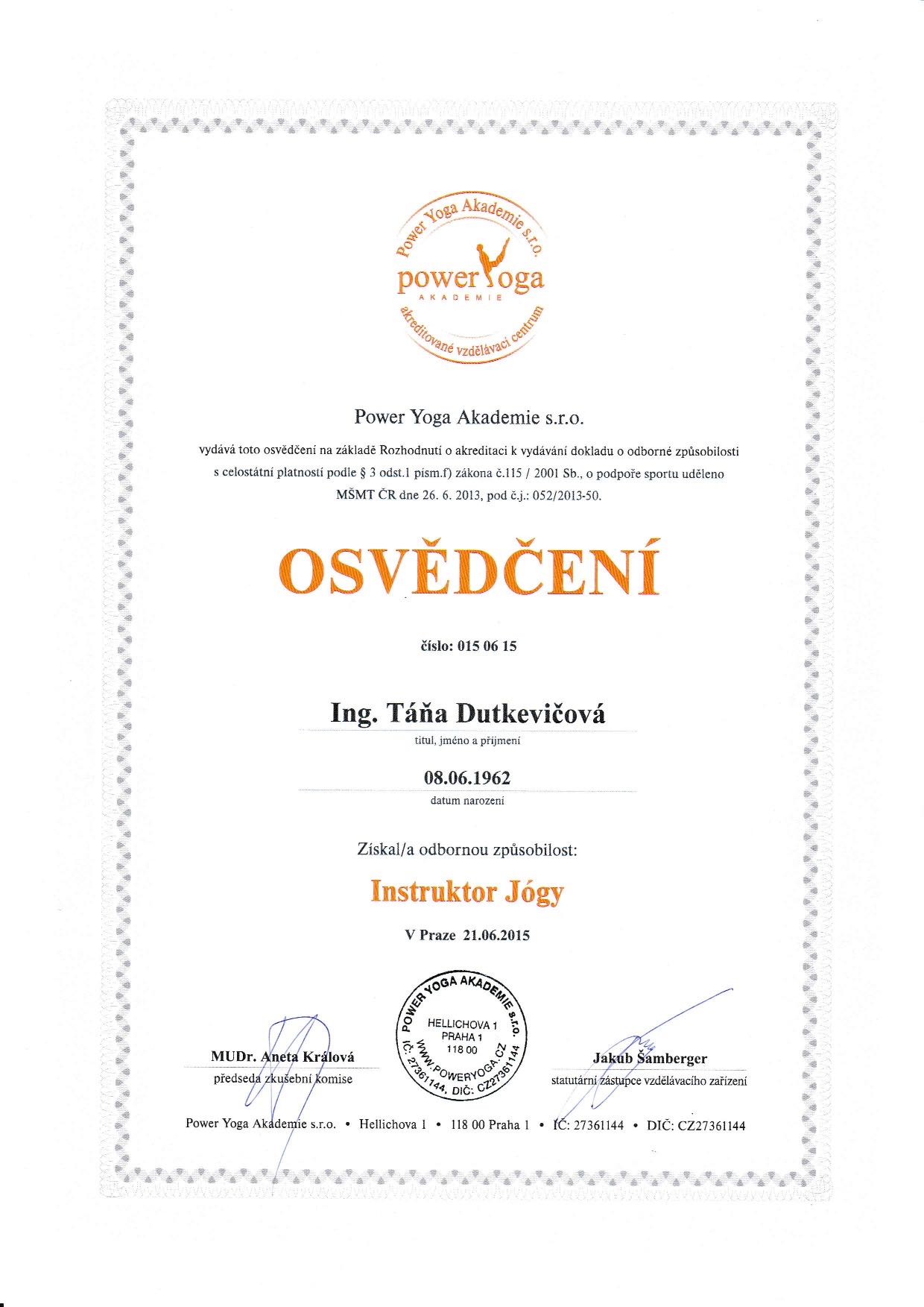 Po návratu do ČR jsem v roce 2010 zahájila svou učitelskou praxi. Věnuji se hathajóze (resp. spíše zdravotní józe), kterou podle potřeby prokládám i prvky Pilatesovy metody, Feldenkraisovy metody či cvičení Čchi-kung, s důrazem na aktivaci a posílení hlubokého stabilizačního systému páteře (metoda DNS). Pracuji s malými skupinami cvičenců a snažím se jim vytvářet lekce „na míru“. Práce s mými studenty mi přináší velké uspokojení. Občas přijdou obavy, zda jsem neustrnula na místě, zda způsob, jakým lekce vedu, není nudný či stále stejný, zda mám ještě co předávat. Jsou to ale pozitivní obavy, které mě vedou k hledání nových informací, navštěvování různých seminářů a kurzů (nejen z oblasti jógy, ale i z oblasti zdravé výživy či jiných zdraví prospěšných činností) a posouvají mě stále kupředu. Dnes už vím, že fyzioterapeut ze mě v mém věku (bohužel) nebude, ale to nic nemění na skutečnosti, že učit se můžu stále. Odměnou jsou pro mě mí studenti, z nichž většina se mnou cvičí od začátku a vodí na mé lekce další zájemce. A co teprve, když na konci lekce někdo pronese: „To je mi dnes krásně. Už se těším na příště.“ Já se zase snažím povzbuzovat a chválit své klienty a předávat jim po troškách své zkušenosti a jógová moudra.