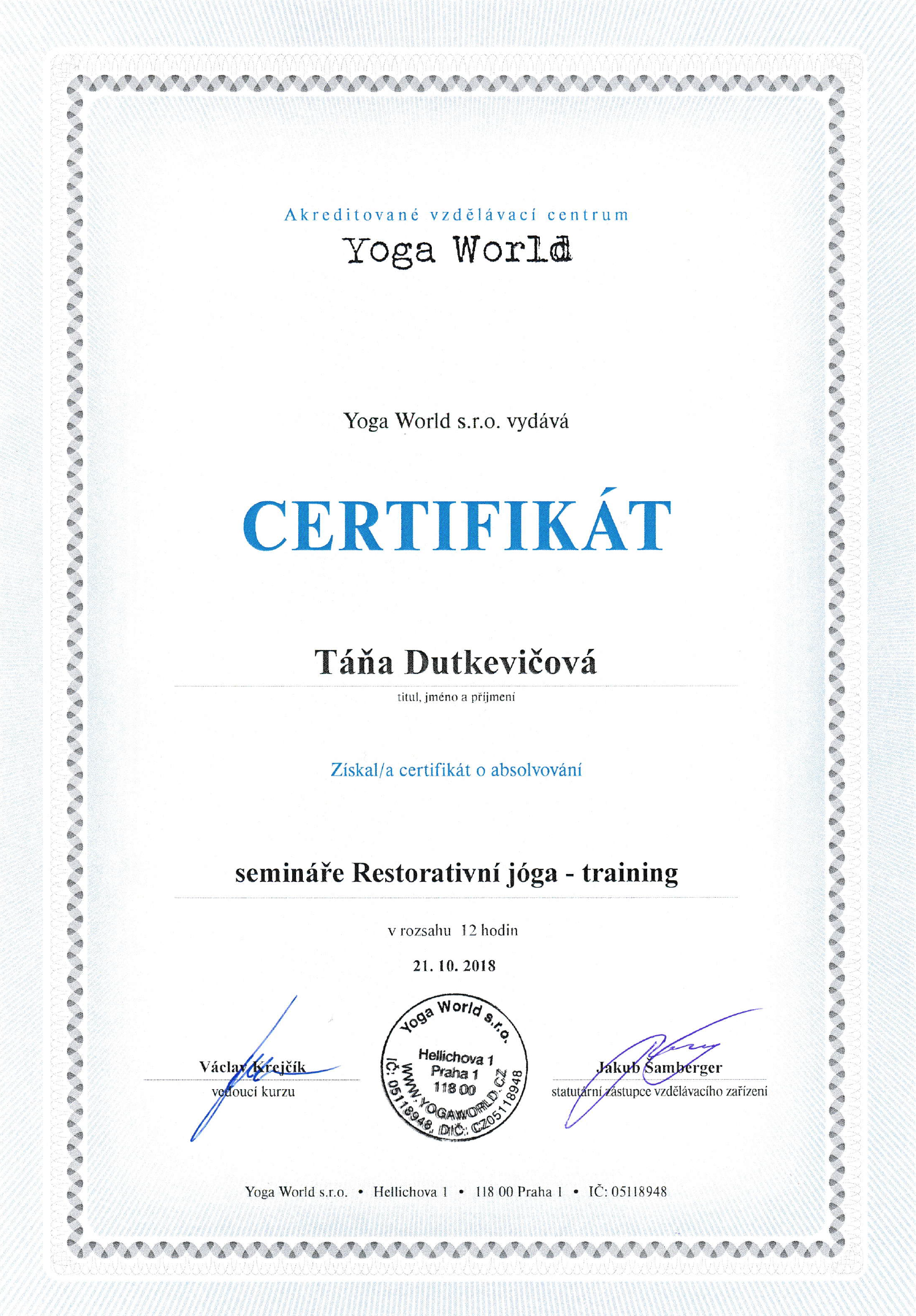 Jsem členem Českého registru fitness profesionálů a mám pojištění odpovědnosti fitness profesionála.